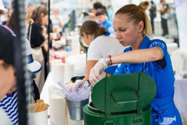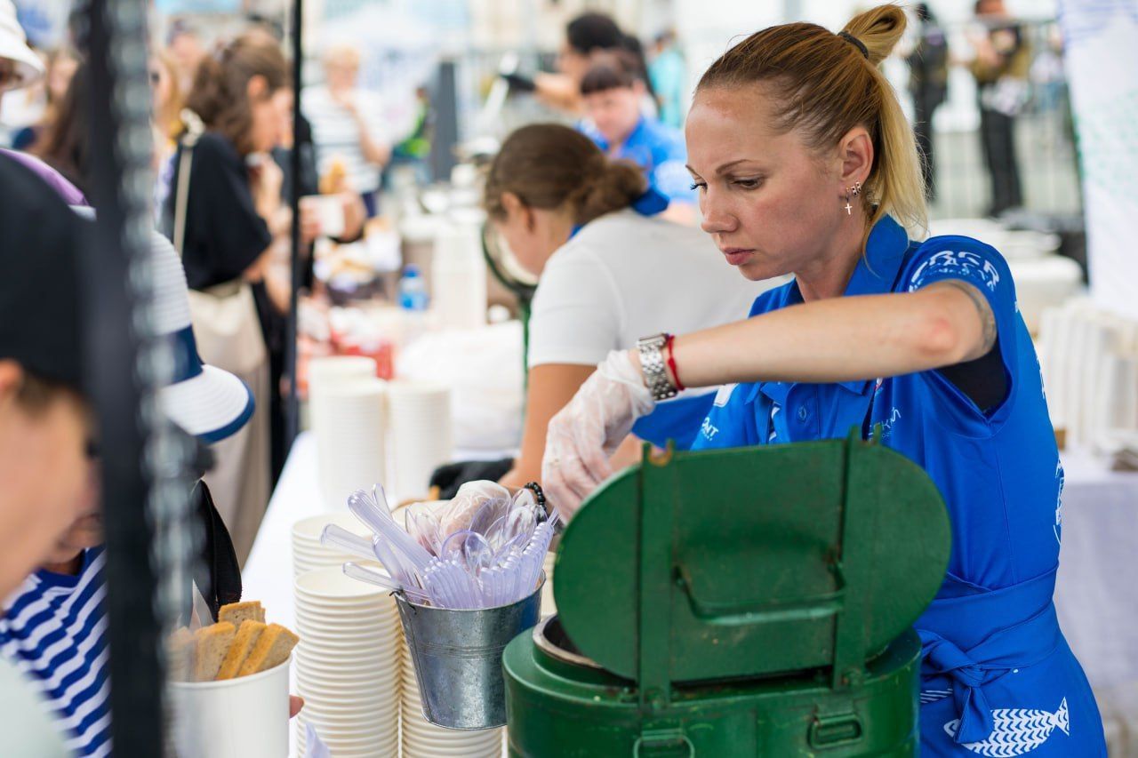 Затем владыка Павел благословил и окропил святой водой полевую кухню с архиерейской ухой, к которой к тому времени выстроилась уже большая очередь горожан. За день раздали около 2000 порций вкуснейшей ухи, приготовленной поварами Спасо-Преображенского кафедрального собора.