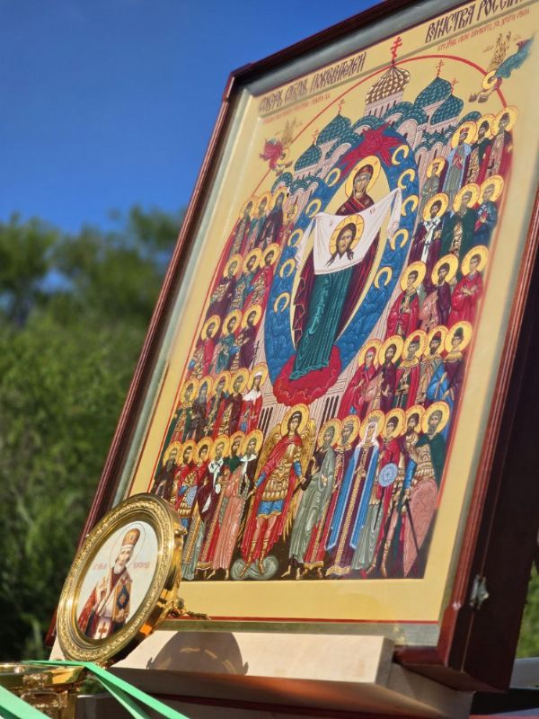 Икона «Собор святых покровителей воинства российского» и ковчег с мощами святителя Николая отправились в следующий пункт Крестного хода — п. Зарубино.