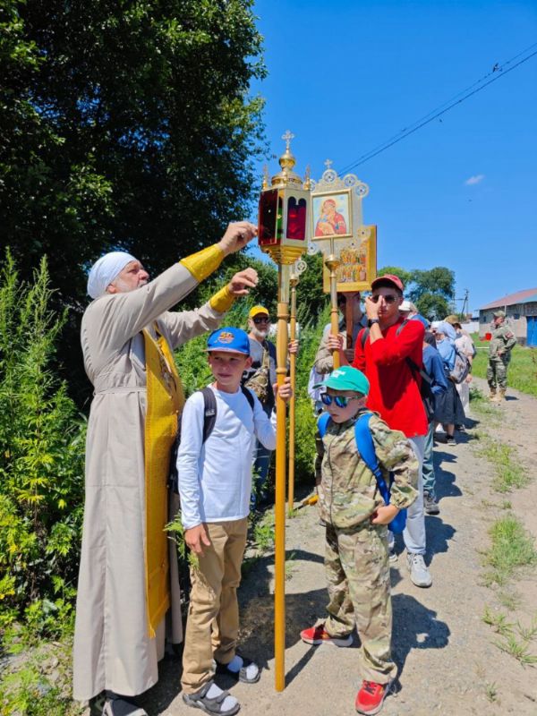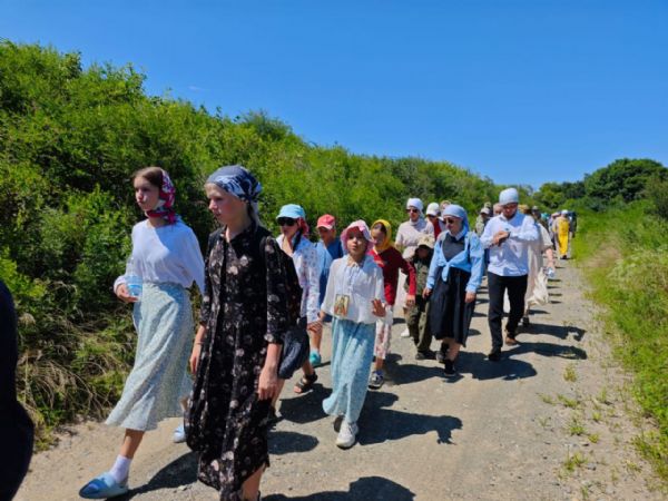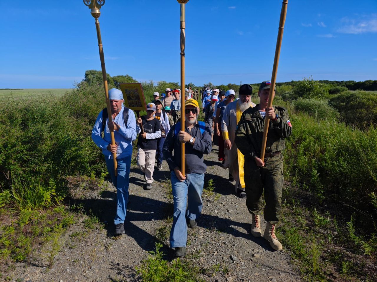 Молитвенное шествие с иконой «Собор святых покровителей воинства российского» продолжило свой маршрут в Хасанском районе. Крестный ход возглавил протоиерей Игорь Талько, настоятель храма свв. Кирилла и Мефодия и духовник православной гимназии. В процессии также приняли участие воспитанники православной гимназии, их родители и представители Юнармии — всего 86 человек.