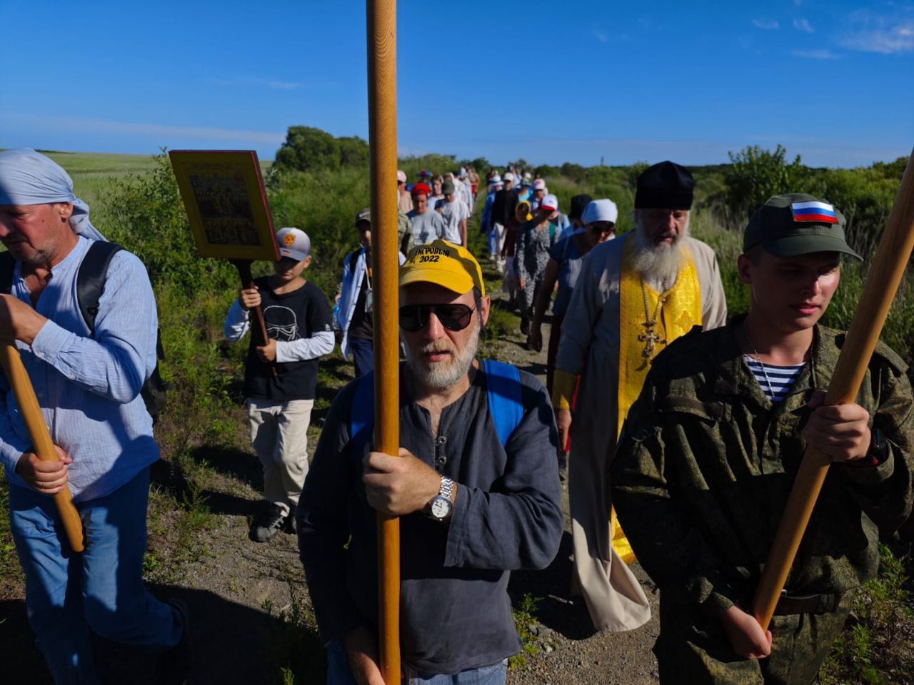 Пеший крестный ход с иконой святых покровителей воинства прошёл вдоль русла реки Туманной