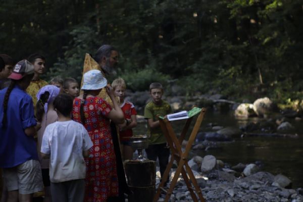 По завершении богослужения отец Илия провёл беседы с детьми и отслужил водосвятный молебен на Смольном ручье.