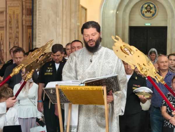 Богослужение совершалось перед прибывшей в храм иконой «Собор святых покровителей воинства российского». В числе молящихся были командующий ТОФ, адмирал В. Н. Лиина, начальник управления по Приморскому краю ФСБ России, генерал-лейтенант Д. Н. Юдин и глава города Владивостока Константин Шестаков, военные моряки, прихожане владивостокских храмов. Многие из них сегодня причастились Святых Христовых Тайн.