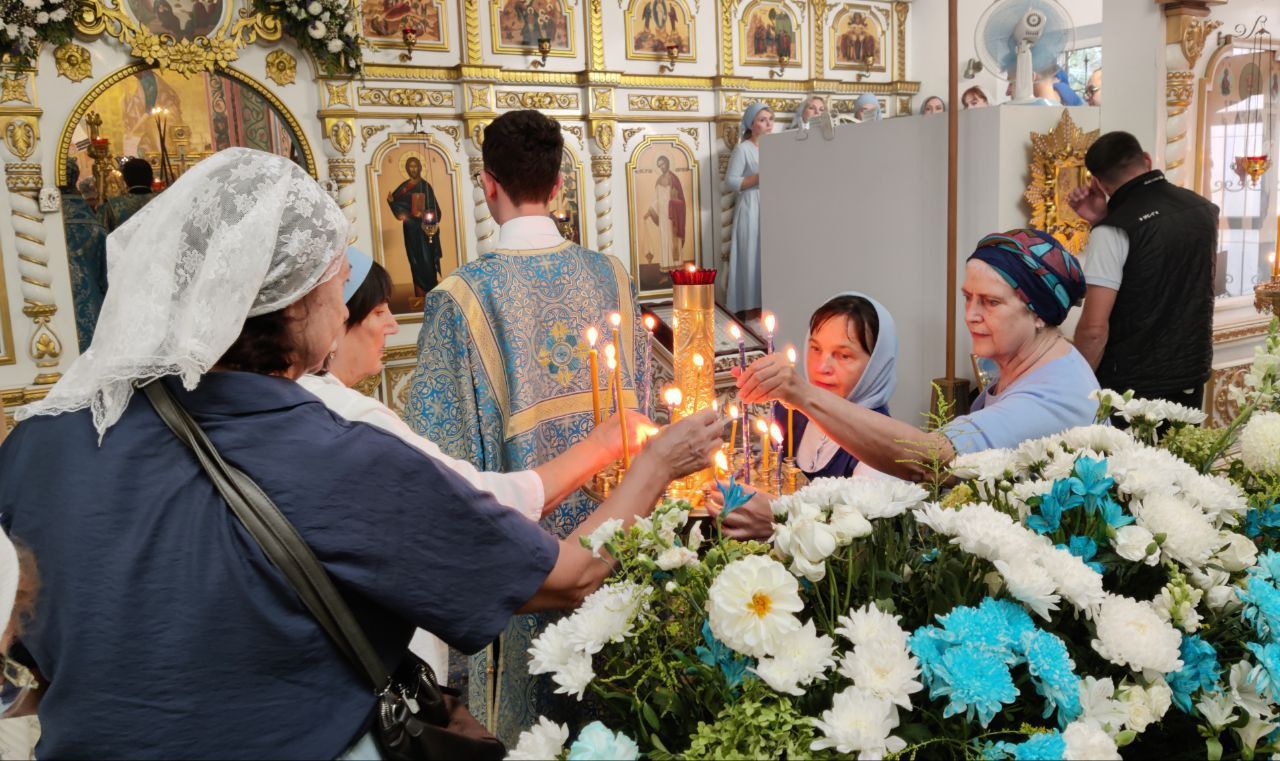 Сегодня Успенский храм был заполнен верующими. Все пришли поклониться Божией Матери, окончание земной жизни Которой стала для нас праздником, свидетельством Жизни Вечной.