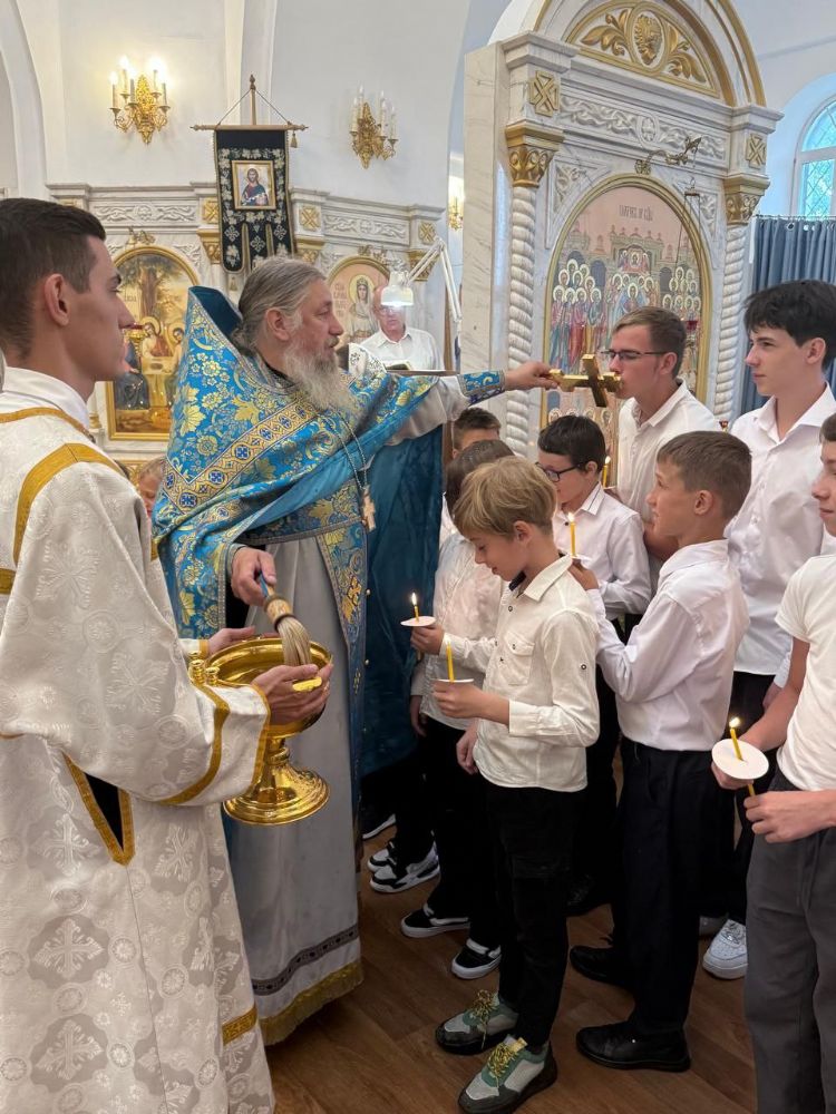В храме Покрова Пресвятой Богородицы п. Угловое настоятель храма протоиерей Сергий Бирюк совершил молебен на начало нового учебного года для учащихся воскресно-приходской школы