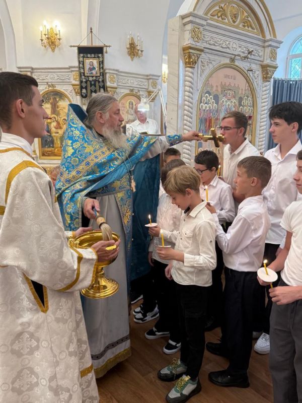 31 августа в храме Покрова Пресвятой Богородицы п. Угловое настоятель храма протоиерей Сергий Бирюк совершил молебен на начало нового учебного года для учащихся воскресно-приходской школы.