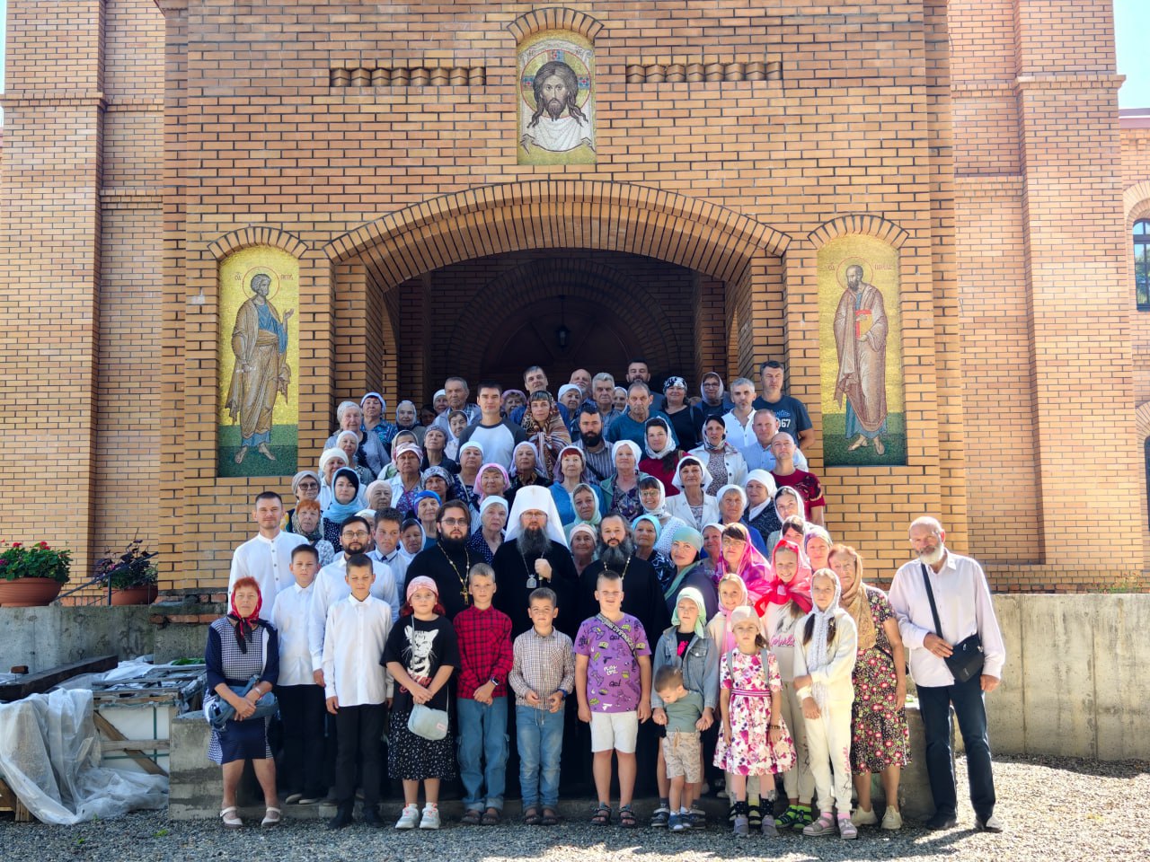 Завершилось богослужение общим фото главы митрополии со священниками и прихожанами на фоне прекрасного здания храма.