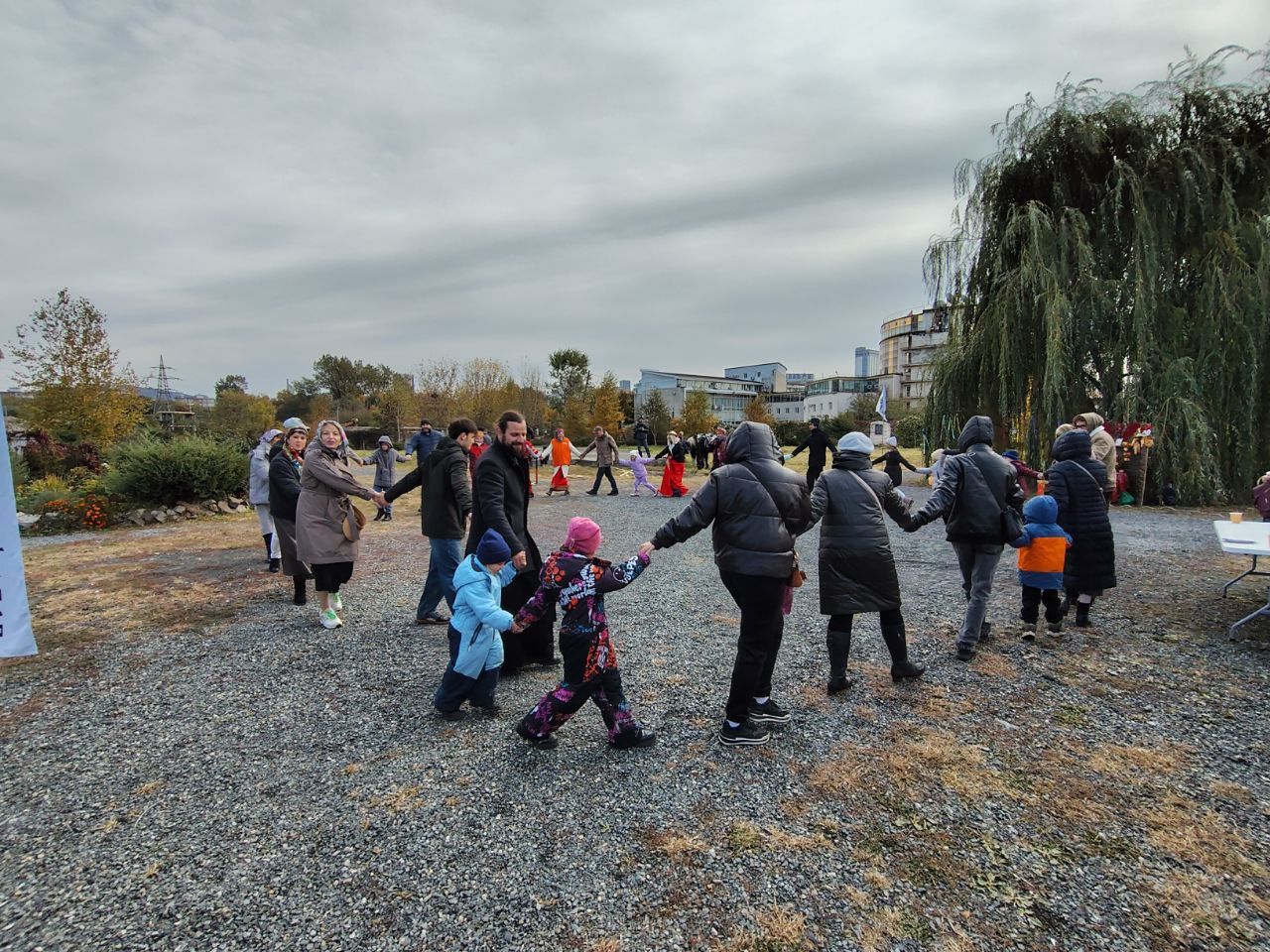 Праздничную атмосферу создавал ансамбль «Русский стиль», исполнивший как народные, так и авторские песни, написанные специально для этого события. Очень скоро выступление музыкантов переросло в большое общее действо. Взрослые и дети, взявшись за руки, закружились в хороводах, вместе пели знакомые русские народные песни, весело аккомпанировали на деревянных ложках и трещотках.