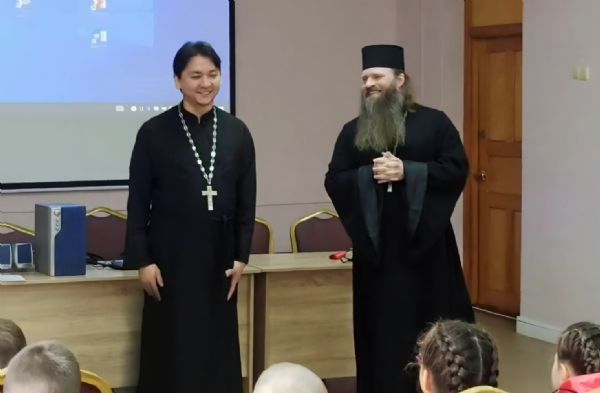 Протоиерей Андрей Калчев и иеромонах Марк (Корнилов) побывали во владивостокской школе № 57, где по приглашению руководства провели детьми киноурок на тему «Отзывчивость»