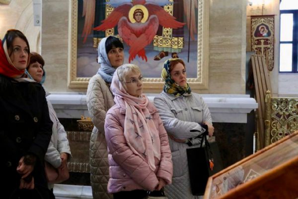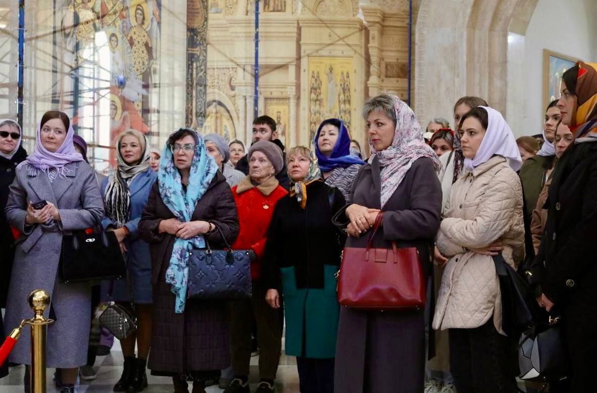В начале встречи по традиции правящий архиерей провел экскурсию для гостей по главному храму Приморья. Рассказывая о храмовых росписях и святынях, владыка Павел познакомил присутствующих с историей Ветхого и Нового завета, а также сообщил некоторые элементы богословия иконостаса. Особое внимание архипастырь уделил Таинствам Исповеди и Причастия, а также призвал всех присутствующих к покаянию как к единственно верному пути спасения.
