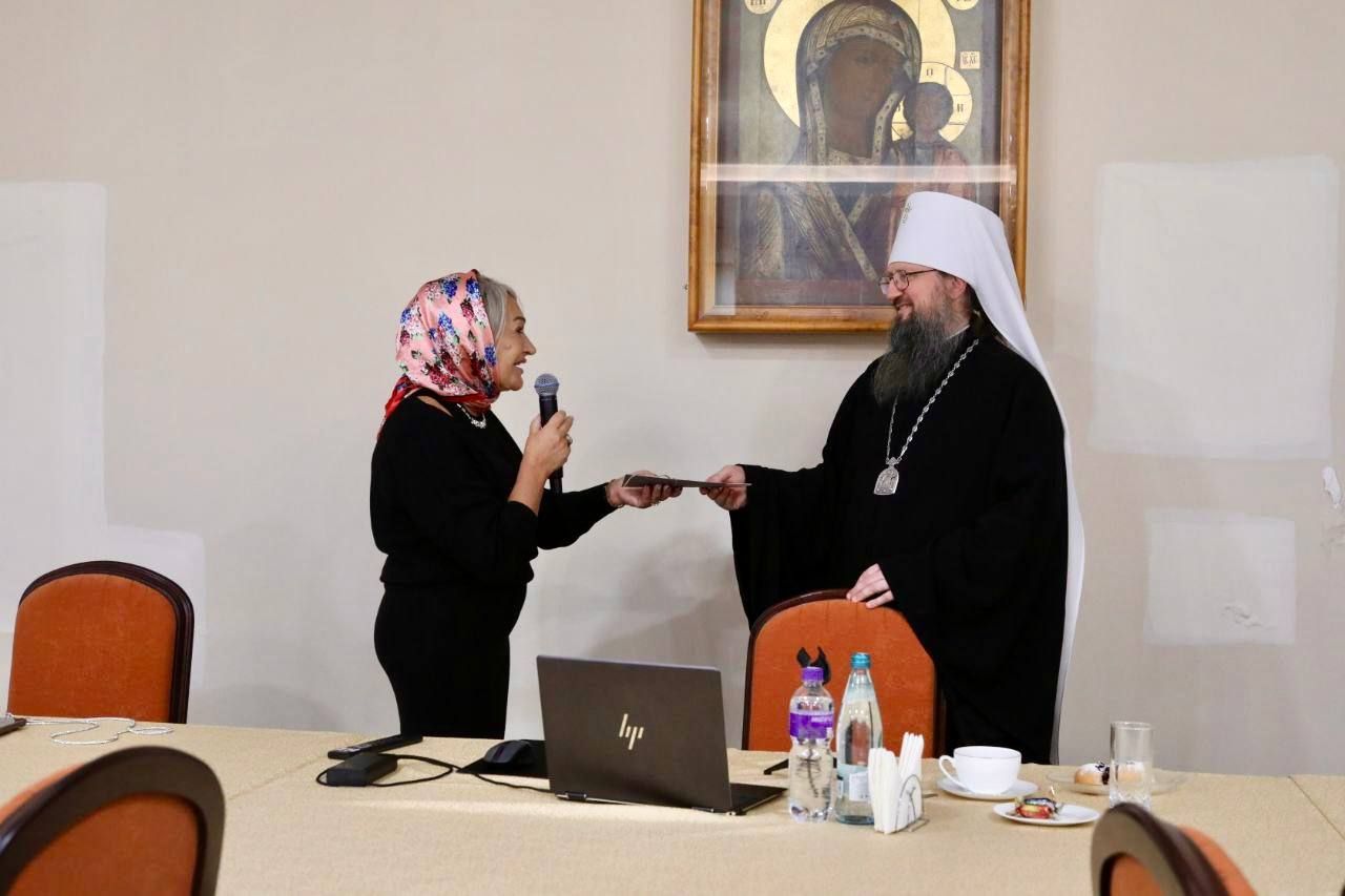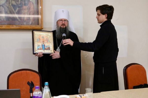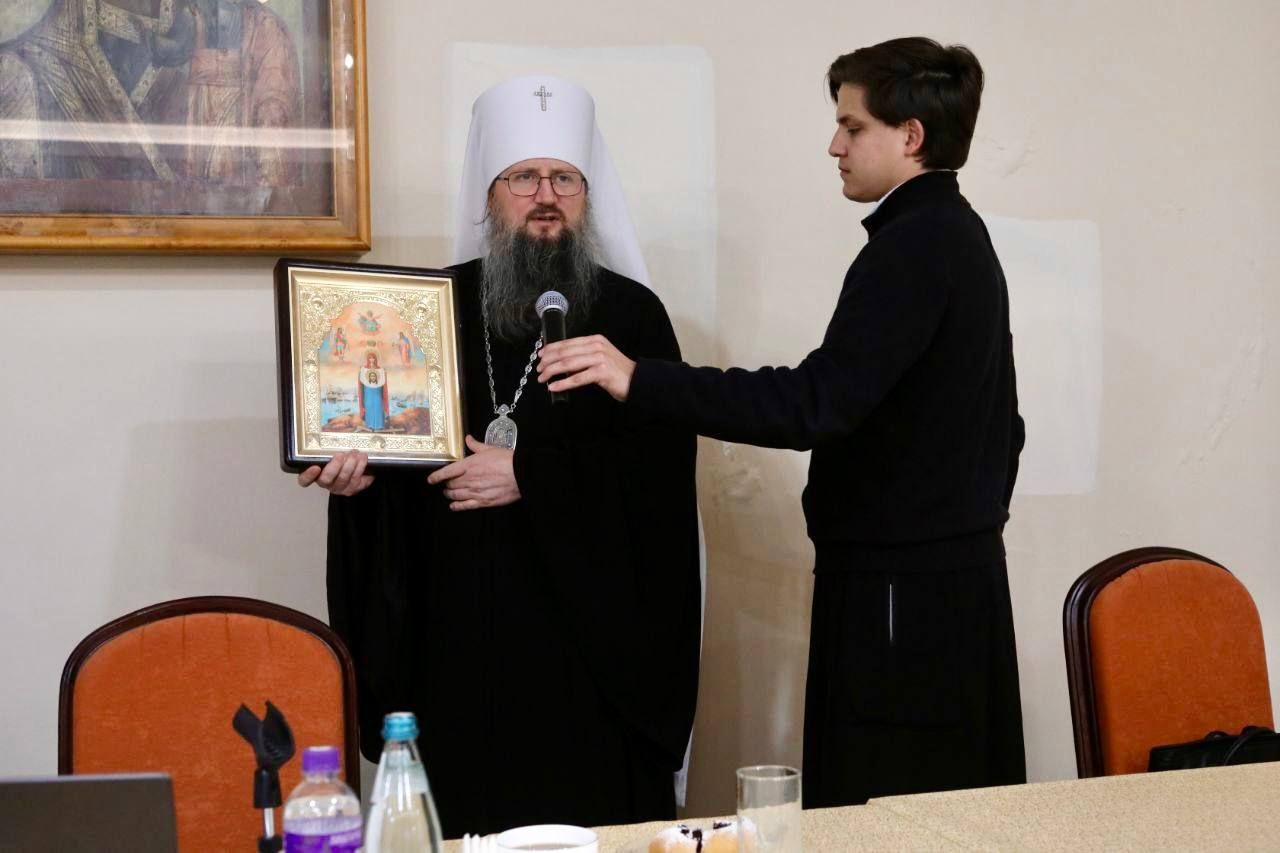 Затем в трапезной, в непринужденной обстановке, беседа продолжилась. Глава митрополии поделился историями из своего жизненного и духовного опыта, показал фото, запечатлевшие яркие моменты его пребывания в Архангело-Михайловском монастыре с. Козиха, служения на кафедрах Ейской и Душанбинской епархий.