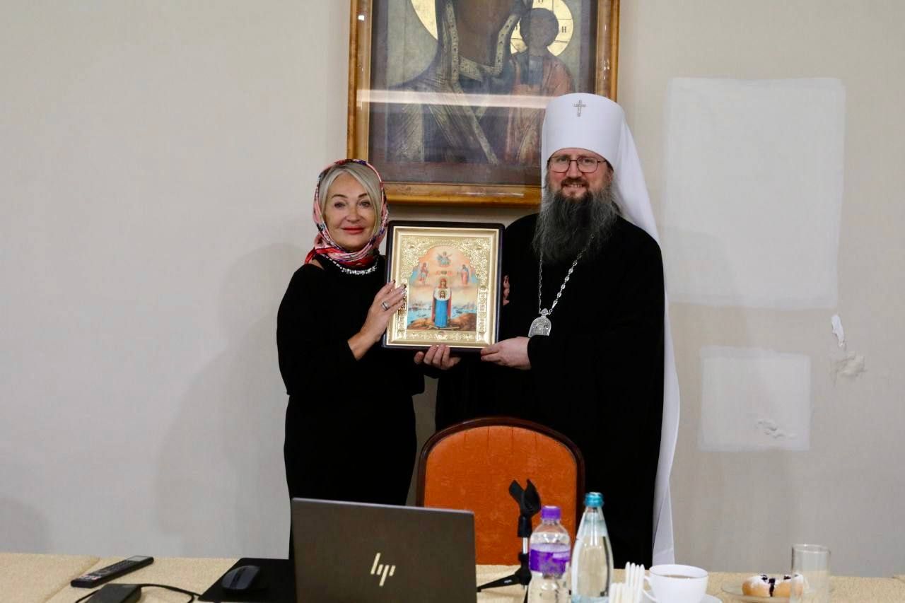 От лица всех ГБУЗ «ПКПЦ» Татьяна Юрьевна вручила владыке приглашение на мероприятие в честь Международного дня недоношенного ребенка. В свою очередь, выражая сердечную благодарность работникам центра за их труд, архипастырь подарил гостям Порт-Артурскую икону Божией Матери.