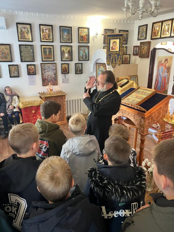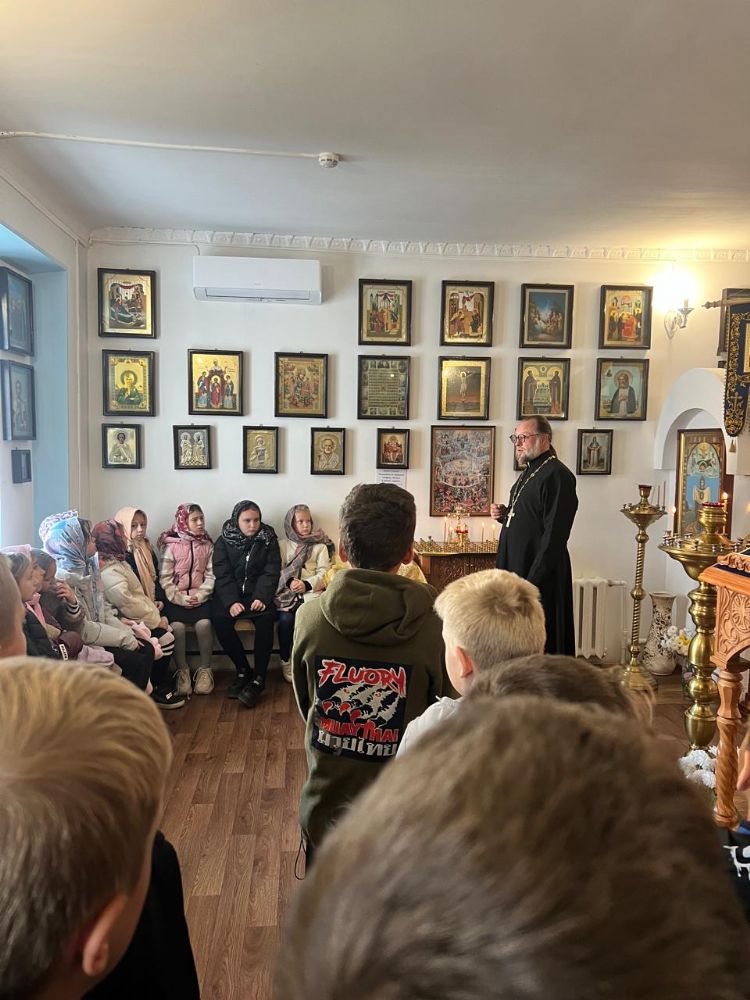 21 октября ребята 4 "б" класса МБОУ СОШ 4 имени В.Н. Косова п. Тавричанка на уроке «Основы религиозных культур и светской этики» совершили путешествие в мир Православия. Вместе с зам. директора по учебно-воспитательной работе Н.В. Просянюк школьники отправились в поселковый храм Успения Пресвятой Богородицы. На первой станции настоятель храма, иерей Александр Казанцев, рассказал ребятам об основных православных праздниках, их традициях и обрядах.