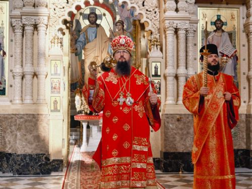 В канун субботы 5-ой седмицы по Пасхе богослужение в Спасо-Преображенском соборе совершил митрополит Павел
