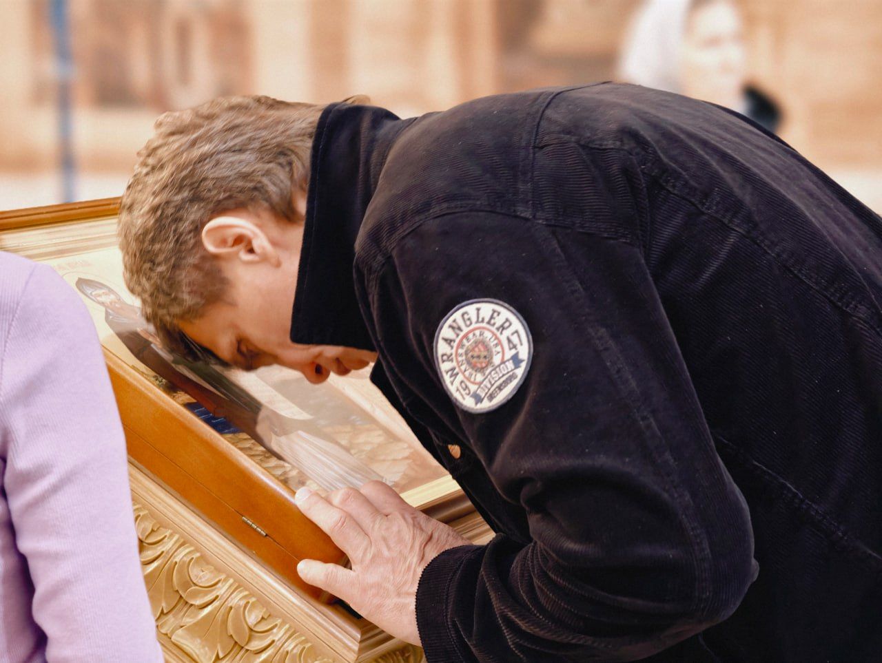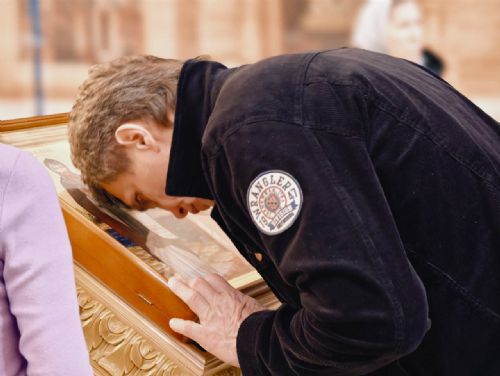 Все присутствующие в храме приложились к праздничной иконе и были помазаны святым елеем.