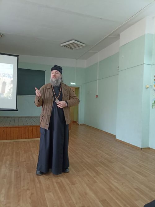 Перед учителями выступил настоятель храма Покрова Божьей Матери игумен Никита (Зеленюк). Он рассказал, как проходили его беседы со школьниками, какие вопросы наиболее заинтересовали ребят, подчеркнул актуальность проекта.