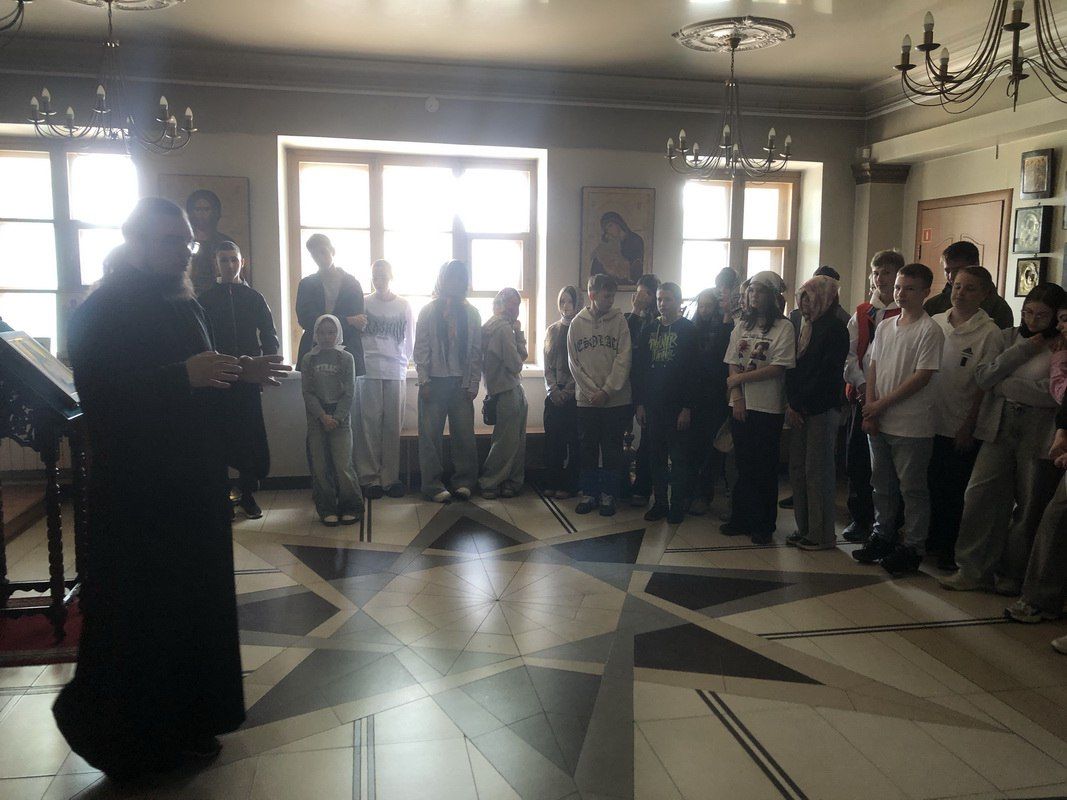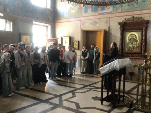 Гимназистов познакомили с более чем столетней историей Казанского храма, рассказали об убранстве храма, его святынях, а также о Евхаристии - главном Таинстве Православной Церкви.
