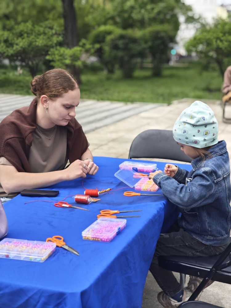 Активисты отдела провели два мастер-класса: вязание браслетов из бусинок и акриловую роспись на ракушках. Каждый ребенок, прошедший мастер-класс, получал в награду конфеты.