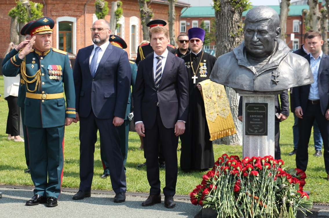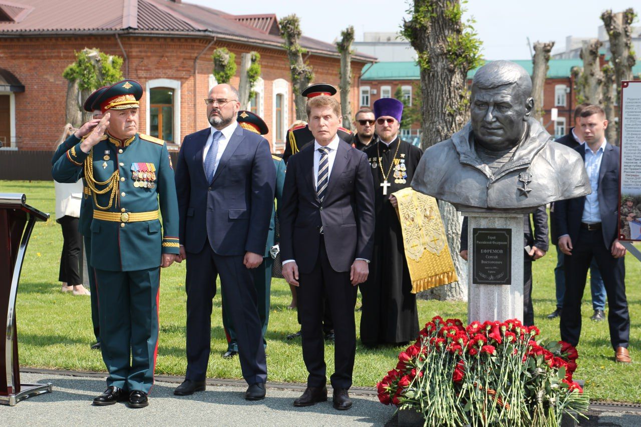 21 мая в Уссурийском Суворовском военном училище на Аллее Героев открыт новый бюст — Герою России, выпускнику 4-й роты Сергею Викторовичу Ефремову. Вице-губернатор Приморского края, командир приморского добровольческого отряда «Тигр», Сергей Викторович Ефремов погиб 2 февраля 2025 года в Курской области.